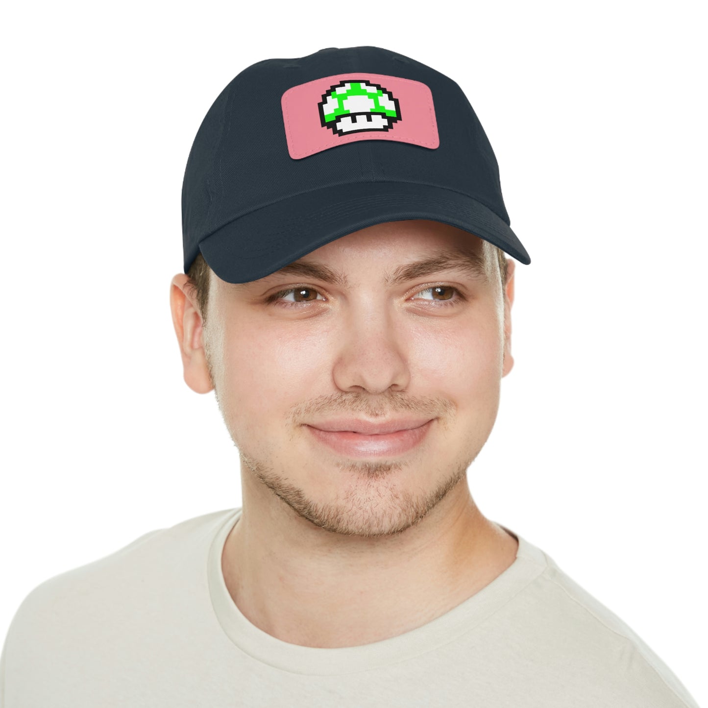 Mushroom 1 UP 8 Bit Style Dad Hat with Leather Patch