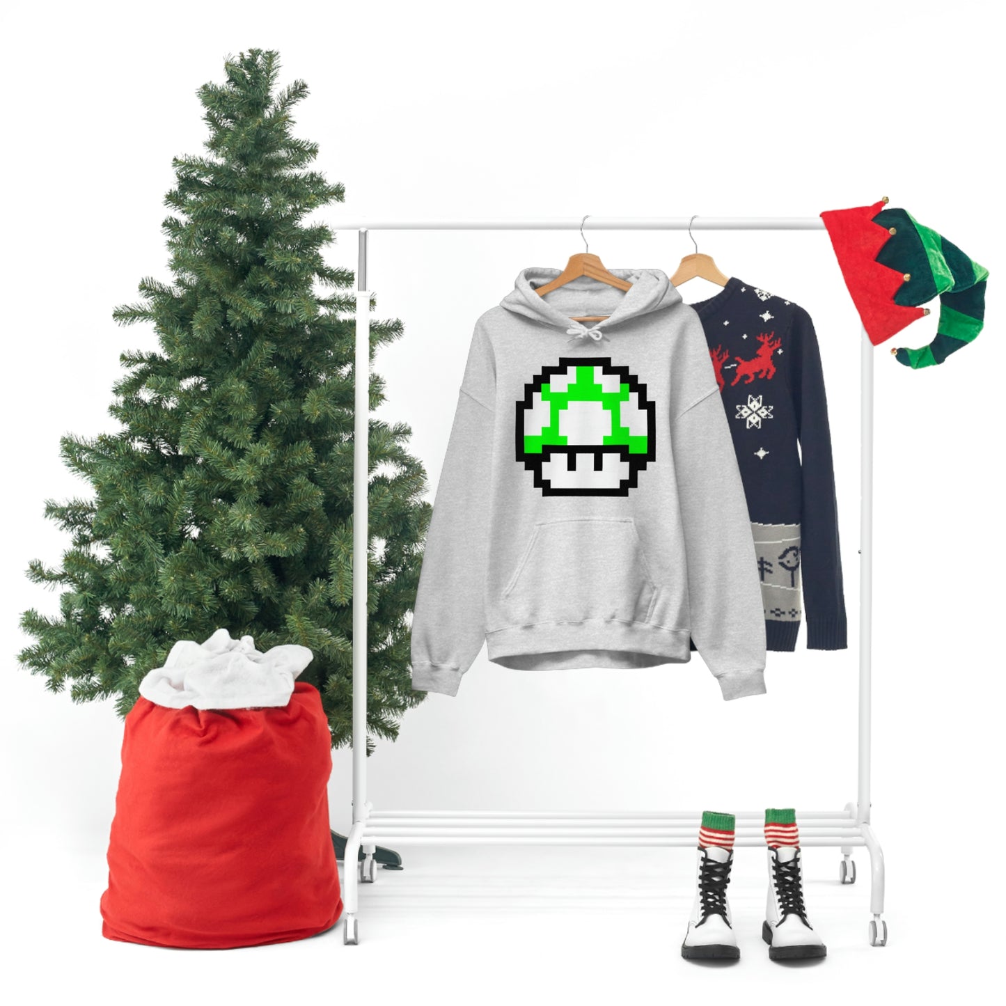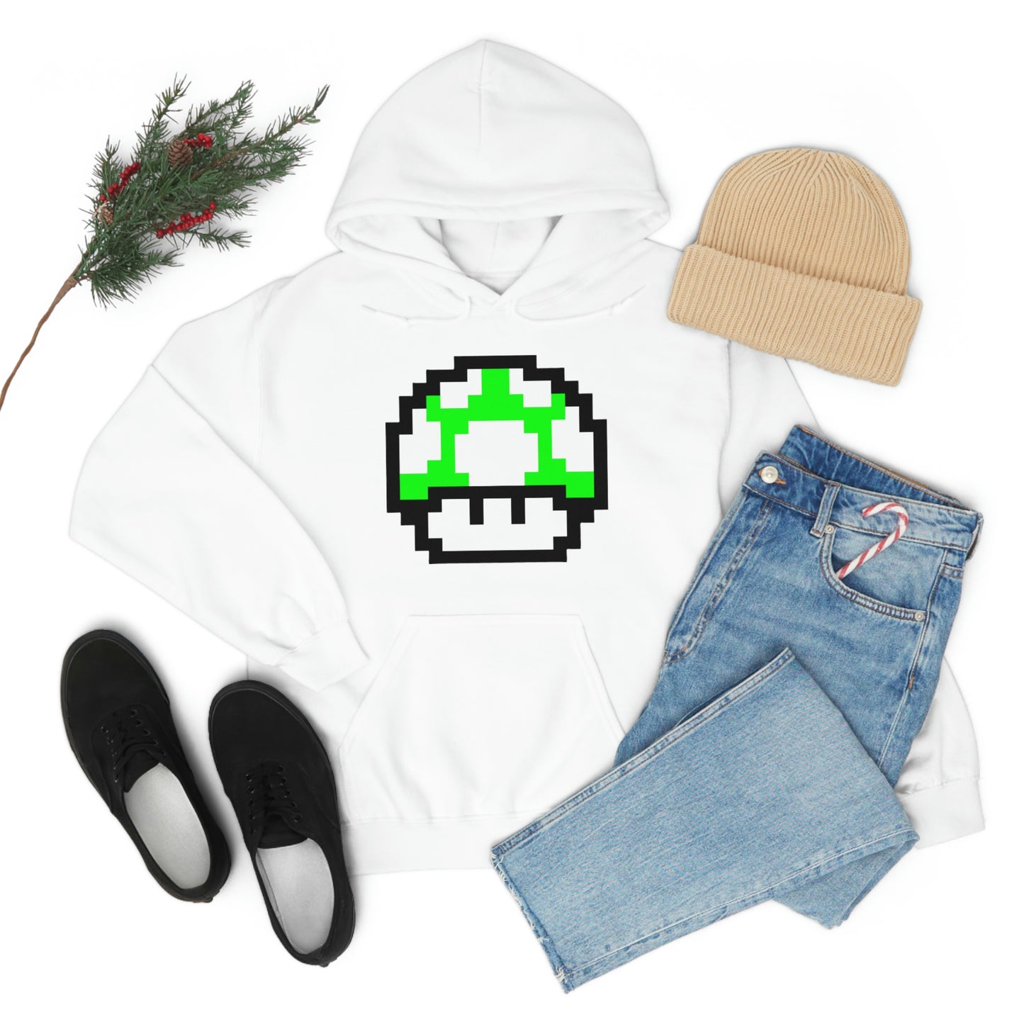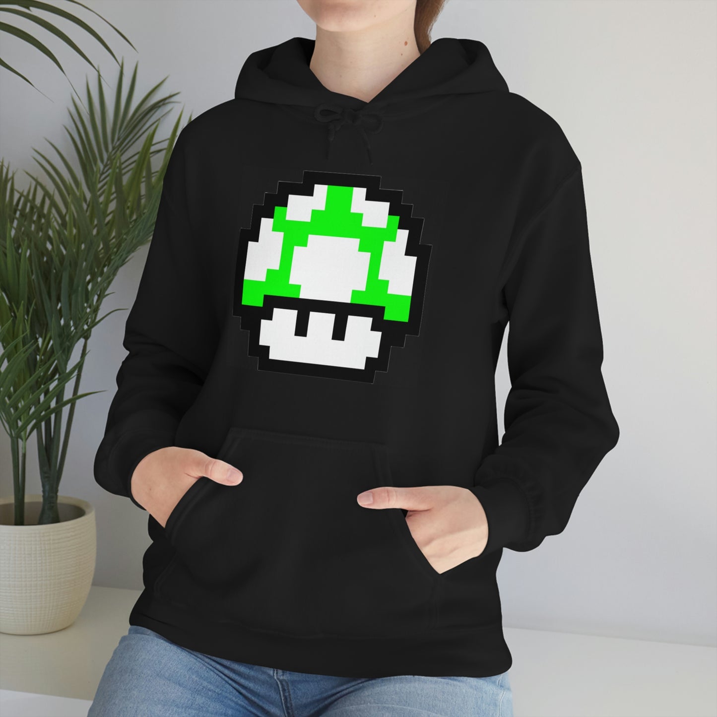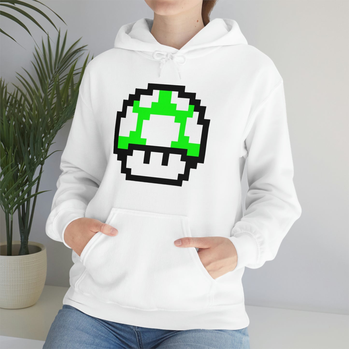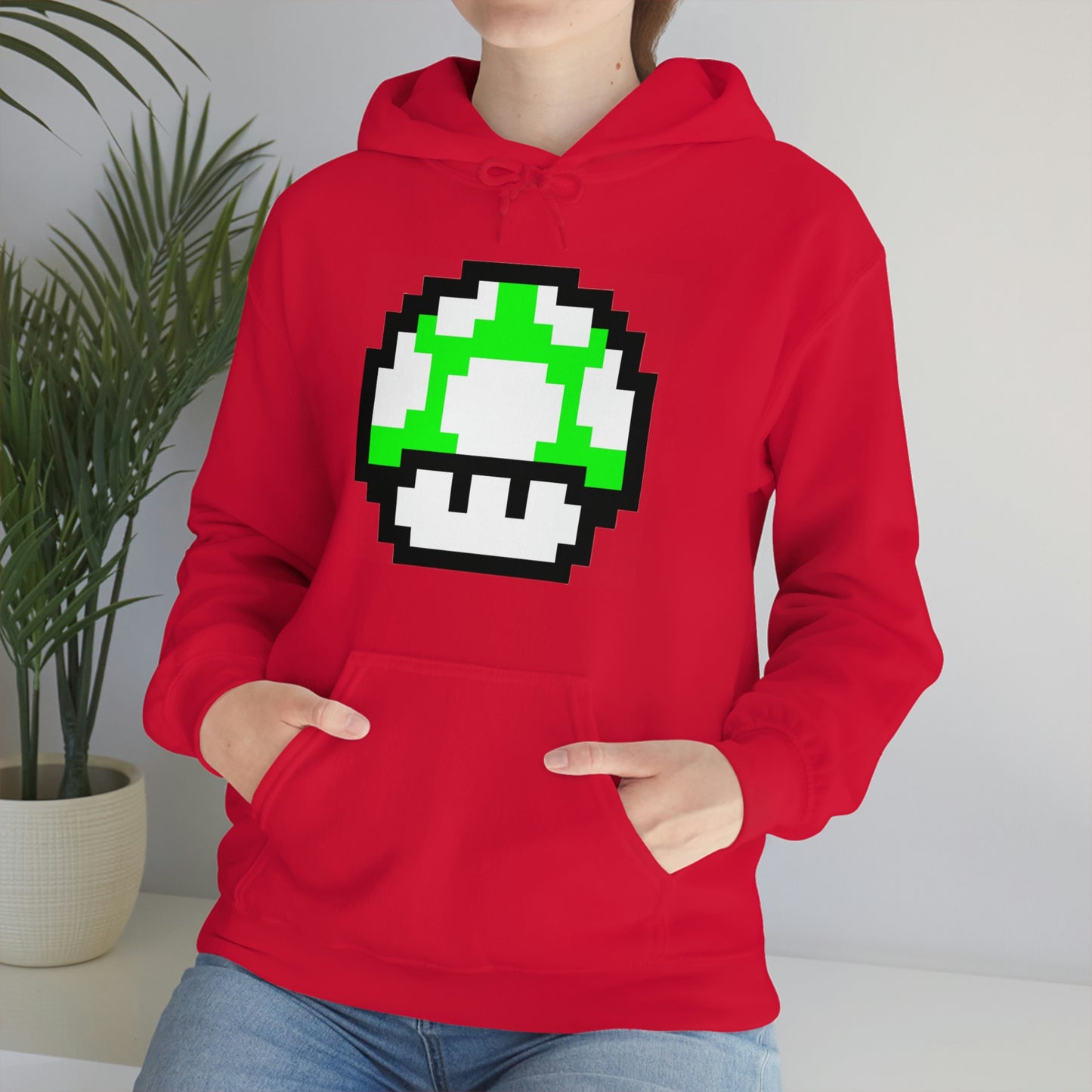 Mushroom 1UP 8 Bit Retro Style Unisex Hooded Sweatshirt